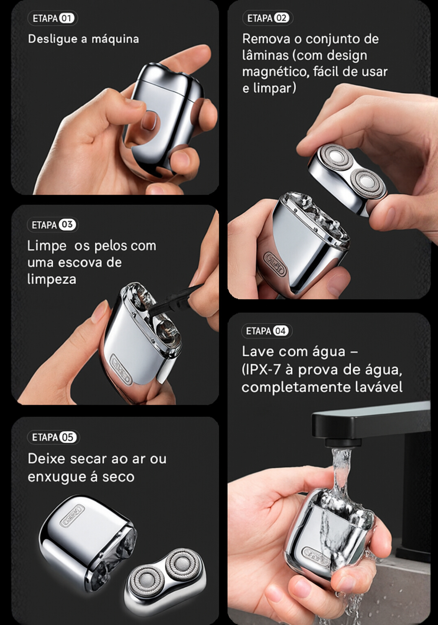 Dura mais de 30 dias com uma única carga (com base em 3 minutos/dia). *Nunca mais se preocupe com baterias descarregadas durante as viagens*.